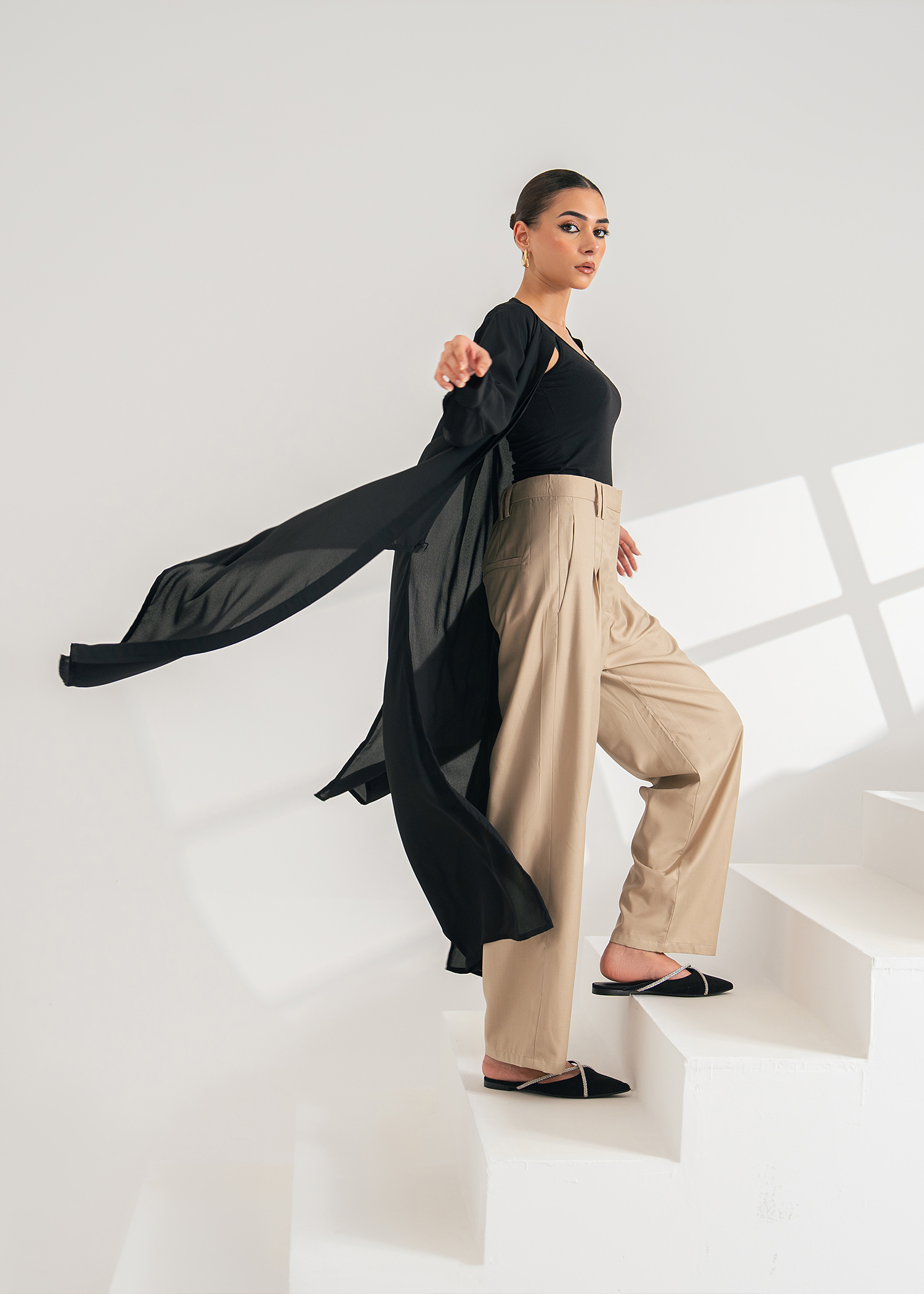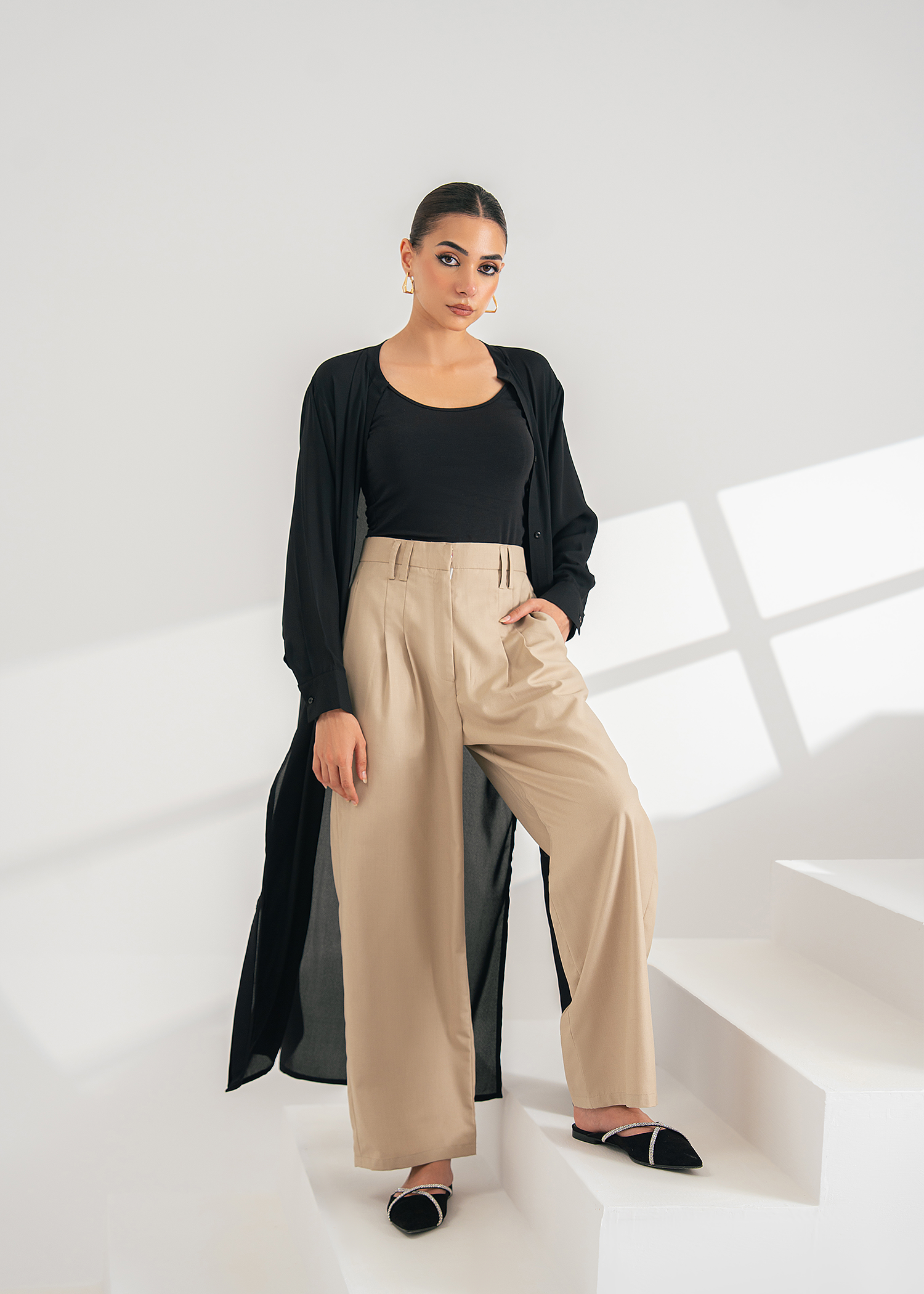 Effortlessly sophisticated, these beige tailored trousers offer a polished look with a relaxed fit. Crafted from premium fabric, they feature a clean silhouette, perfect for both office wear and casual outings. Pair them with blouses or tees to elevate your style with ease and versatility.
